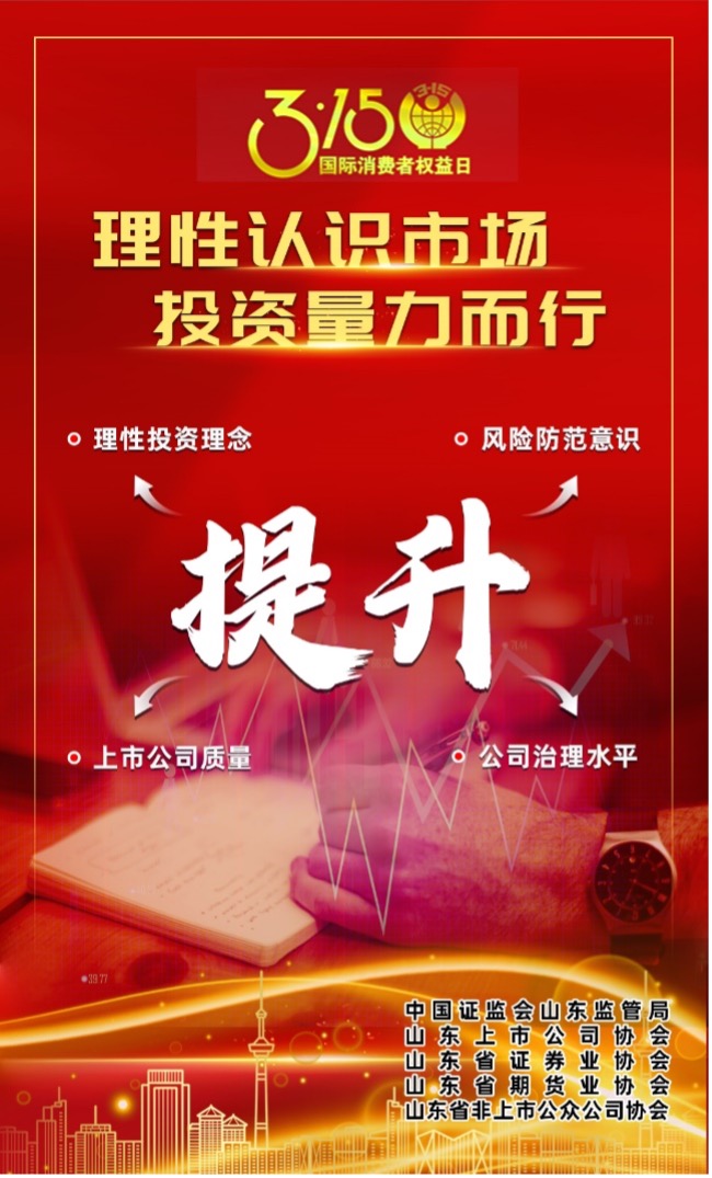 3·15之际,多宝(中国)股份诚挚提醒您: 1、理性认识市场,投资量力而行;提高自我保护意识,远离非法证券期货活动。 2、非法荐股套路多,老师股神都是托,自身权益无保障,擦亮眼睛别上车。 3、一夜暴富是陷阱,保本高息是诱惑,擦亮眼睛辨真假,管好贪心不上当。
